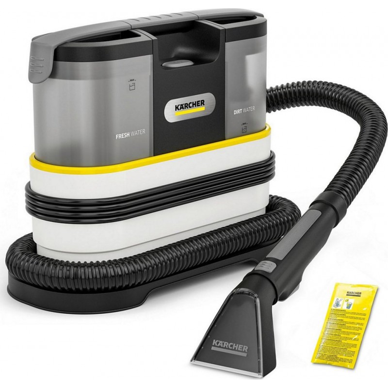 Karcher SE 2 Spot: La performance pro au service de vos textiles domestiques Le Karcher SE 2 Spot apporte l&-39 expertise du nettoyage industriel au coeur de votre foyer. Ce détacheur par injection-extraction pulvérise la solution nettoyante en profondeur avant de l&-39 aspirer instantanément avec la saleté. Sa force réside dans sa technologie d&-39 aspiration optimisée qui garantit une faible humidité résiduelle, permettant à vos tissus de sécher jusqu&-39 à deux fois plus vite qu&-39 avec un appareil standard. Nettoyage en Profondeur et Portée Maximale Équipé d&-39 un moteur de 450W parfaitement calibré, le SE 2 Spot est l&-39 allié idéal contre les taches de café, de graisse ou de boue. Son tuyau de pulvérisation ultra-flexible de 1,8 mètre, combiné à un rayon d&-39 action total de 6,3 mètres, vous permet de nettoyer l&-39 intégralité d&-39 un escalier ou d&-39 un habitacle de voiture sans déplacer l&-39 unité centrale. Son réservoir d&-39 eau propre de 1,5L assure une autonomie généreuse pour traiter plusieurs meubles en une seule session. Séchage Rapide: Technologie de buse Karcher pour un retour à l&-39 utilisation immédiat des textiles. Buse Ergonomique: Largeur de 88 mm idéale pour épouser les formes des fauteuils et sièges auto. Système 2-en-1: Tuyau d&-39 injection et d&-39 aspiration intégré pour une manipulation simplifiée. Conception Robuste et Rangement Intelligent Fidèle à l&-39 ADN de la marque, le Karcher SE 2 Spot se distingue par une robustesse exemplaire pour un poids plume de seulement 4Kg. Ses dimensions compactes et sa poignée de transport ergonomique facilitent le nettoyage dans les espaces restreints. Le rangement est optimisé grâce à un système ingénieux permettant de fixer les accessoires et le tuyau directement sur l&-39 appareil, garantissant un encombrement minimal dans vos placards ou votre garage. Qualité Allemande: Certifié pour sa durabilité, ce détacheur est livré avec des accessoires conçus pour durer, offrant une solution de nettoyage pérenne pour tous les textiles de la maison. L&-39 avis de l&-39 expert: Pourquoi choisir le Karcher SE 2 Spot? Le Karcher SE 2 Spot est le choix de la raison pour ceux qui privilégient la **qualité de fabrication**. Là où d&-39 autres modèles misent sur les gadgets, Karcher se concentre sur l&-39 essentiel: une puissance d&-39 aspiration constante et une buse qui n&-39 inonde pas vos tissus. C&-39 est l&-39 appareil le plus fiable pour l&-39 entretien des matelas et des intérieurs de véhicules, avec l&-39 assurance de trouver des pièces détachées sur le très long terme. Produit neuf dans son emballage d'origine bénéficiant de la garantie originale du fabricant. EAN 4066529172433.